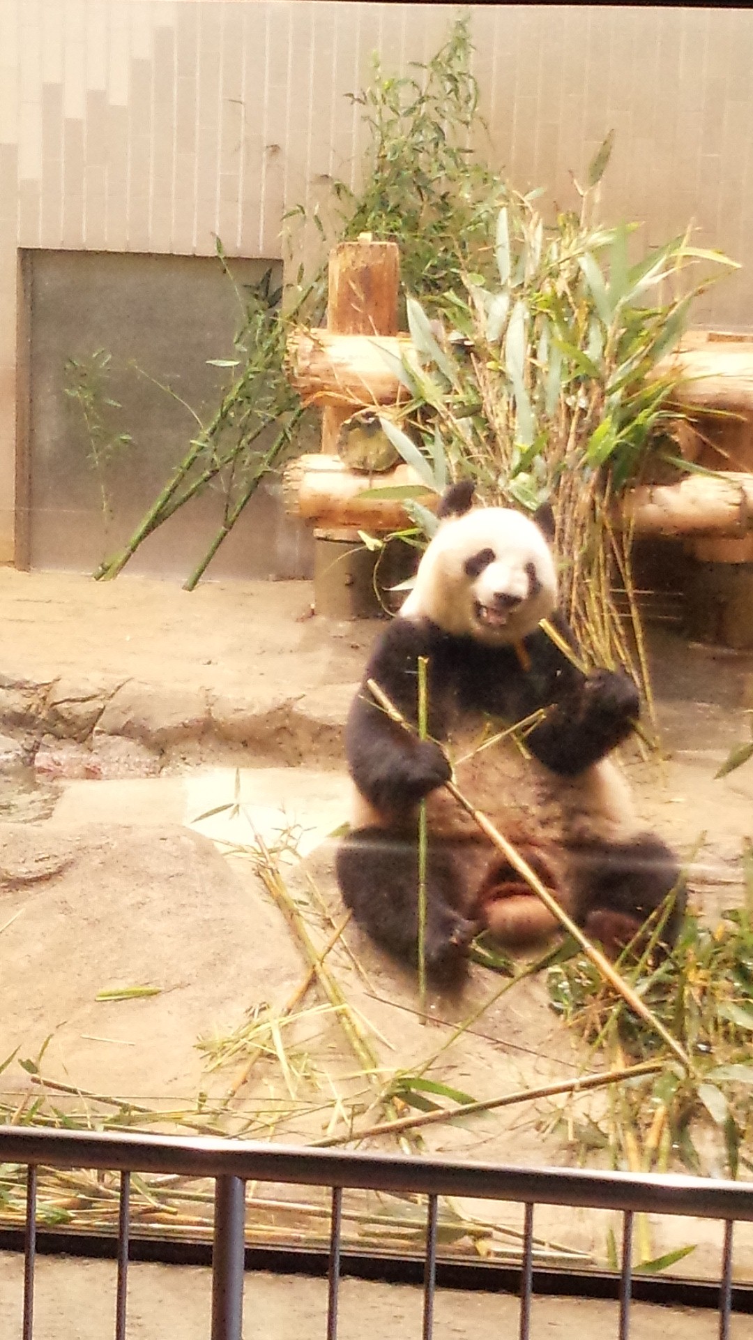 プロ意識の高いパンダ。カメラ目線でにっこり。