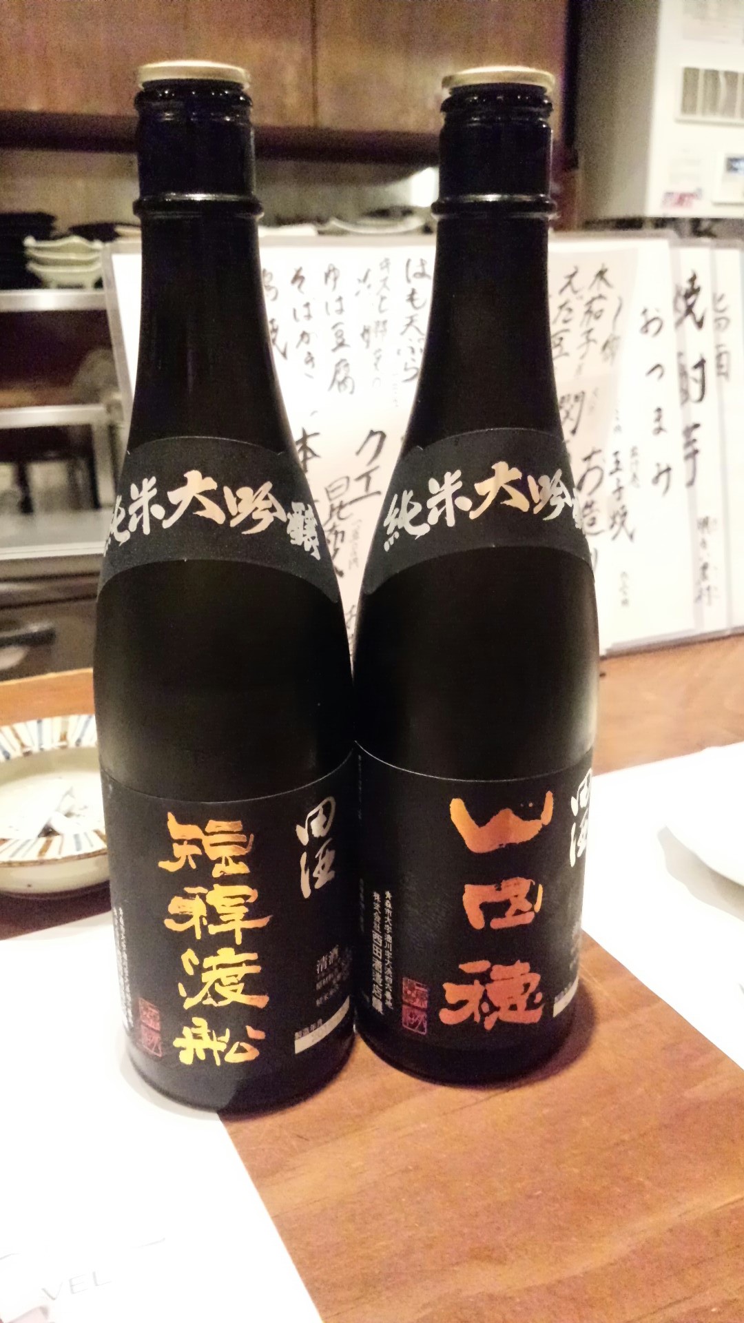 ↓ 京橋のお蕎麦屋さんでいただいた、「田酒のお父さんとお母さん」。