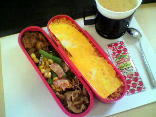 あたくしはランチミーティングが入っていたので、おべんとーは彼だけです。