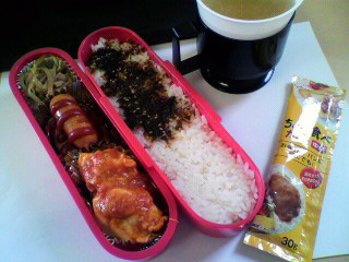彼のお弁当は鶏胸にトマトではなく、煮込みハンバーグを入れておきました。
